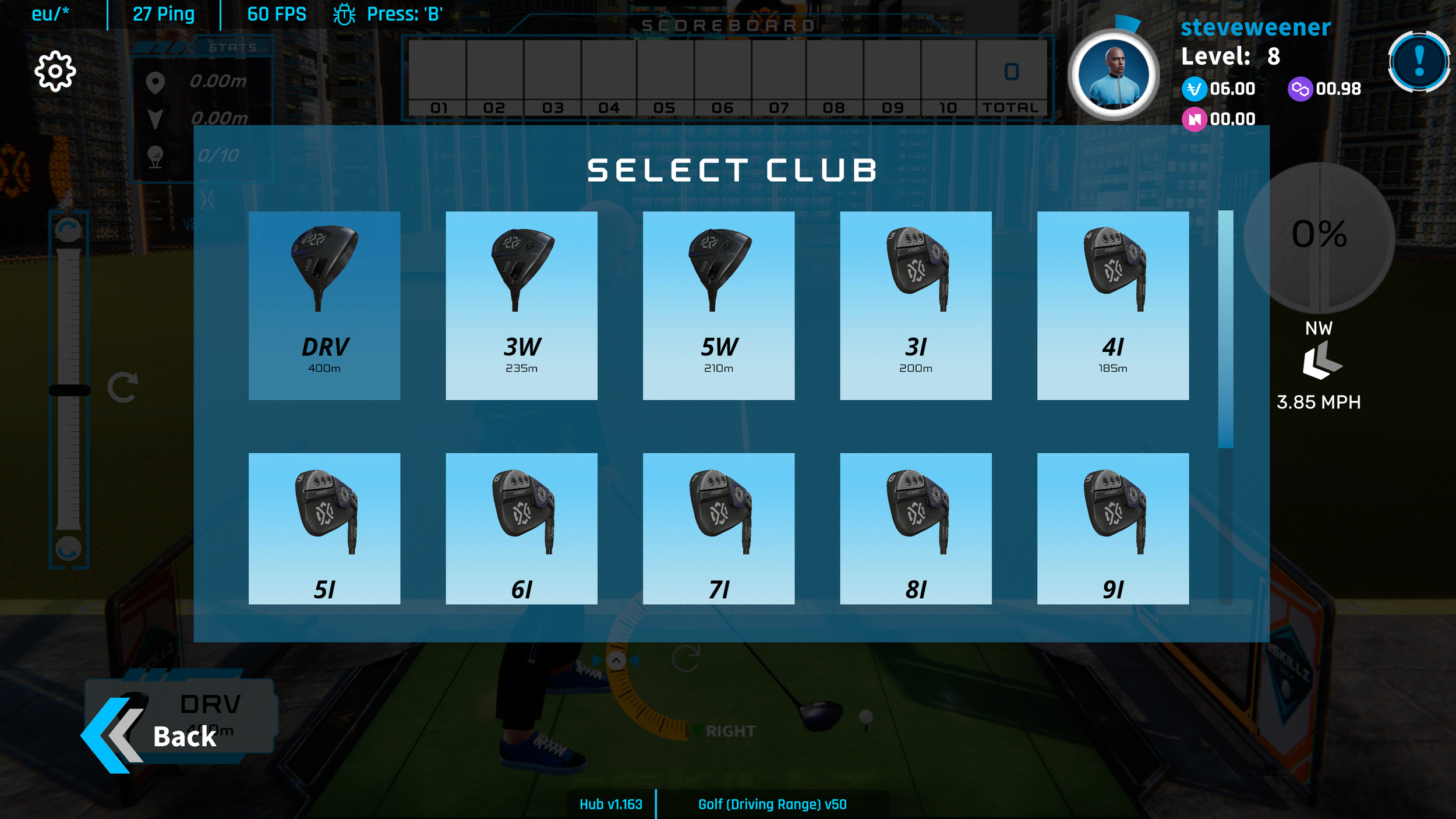 In game club select menu
